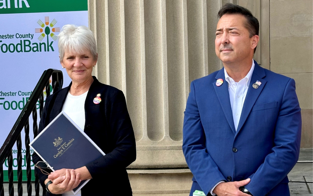 The rally, organized as part of Hunger Action Month, took place on the steps of the historic Chester County Courthouse. It also included remarks from state Rep. Chris Pielli, the Chester County Commissioners, Chester County Food Bank CEO Andrea Youndt, and others.