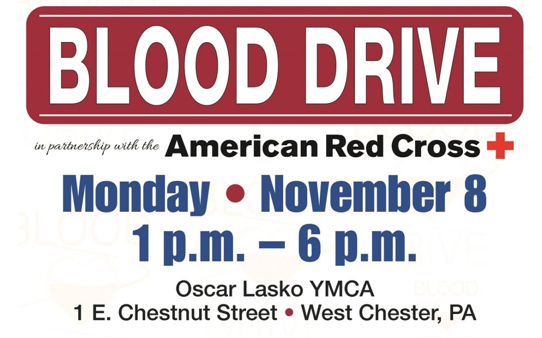The blood drive will take place at the Oscar Lasko YMCA, 1 East Chestnut Street in West Chester.