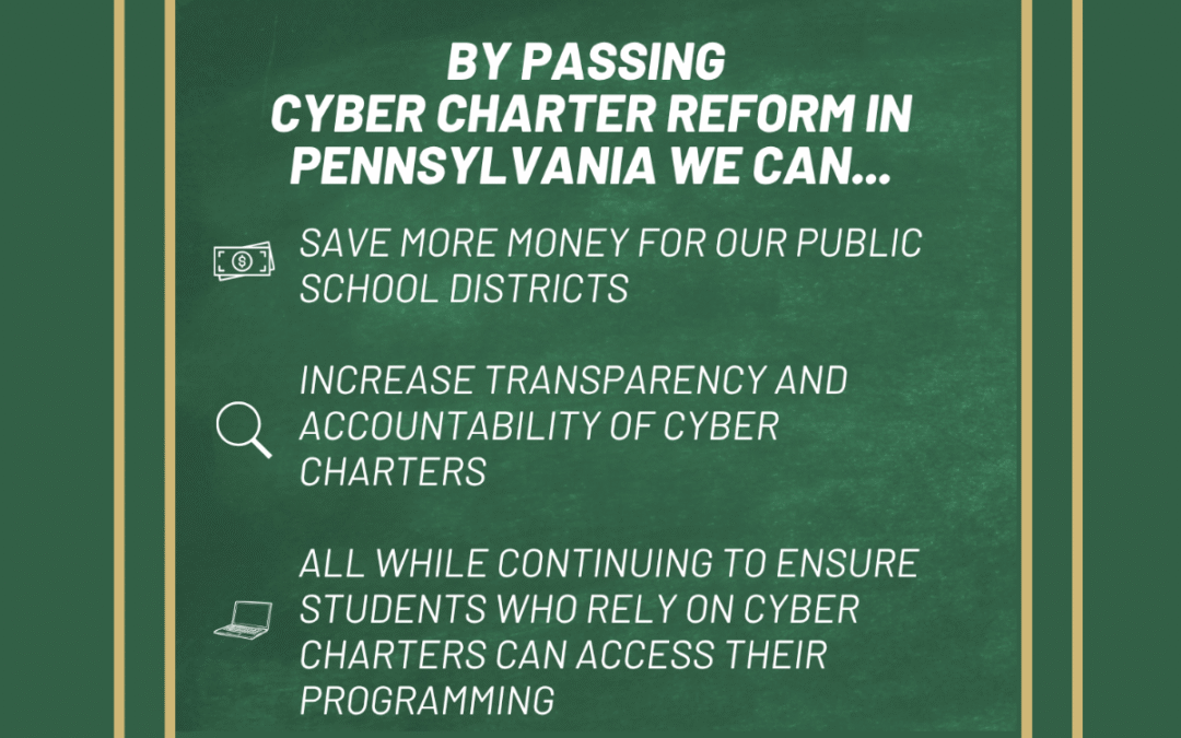 By passing cyber charter reform in Pennsylvania, we can save more money for our public school districts and increase transparency and accountability for cyber charters all while continuing to ensure students who rely on cyber charters can access their programs.