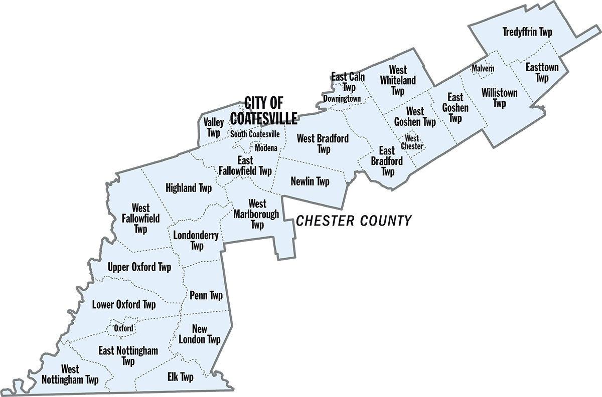 19th District Chester County City of Coatesville Downingtown Borough Easttown Township East Bradford Township East Caln Township East Fallowfield Township East Goshen Township East Nottingham Township Elk Township Highland Township Londonderry Township Lower Oxford Township Malvern Borough Modena Borough Newlin Township New London Township Oxford Borough Penn Township South Coatesville Borough Tredyffrin Township Upper Oxford Township Valley Township West Bradford Township West Chester Borough West Fallowfield Township West Goshen Township West Marlborough Township West Nottingham Township West Whiteland Township Willistown Township Download Map →