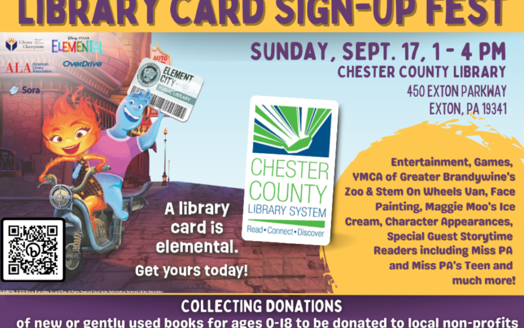 Exton, PA (September 7, 2023) – To help foster a love of reading and connect our residents to the many resources at our local libraries, state Senator Carolyn Comitta and the Chester County Library System (CCLS) are holding a Library Card Sign-Up Fest at the  Chester County Library & District Center in Exton on Sunday, September 17th from 1 to 4 p.m.