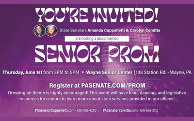 West Chester, Pa (August 20, 2025) – Senior citizens and older adults are invited to participate in free activities, health screenings, entertainment, and information on local and state services at State Senator Caroyn Comitta’s Senior Expo on Tuesday, October 14, at...
