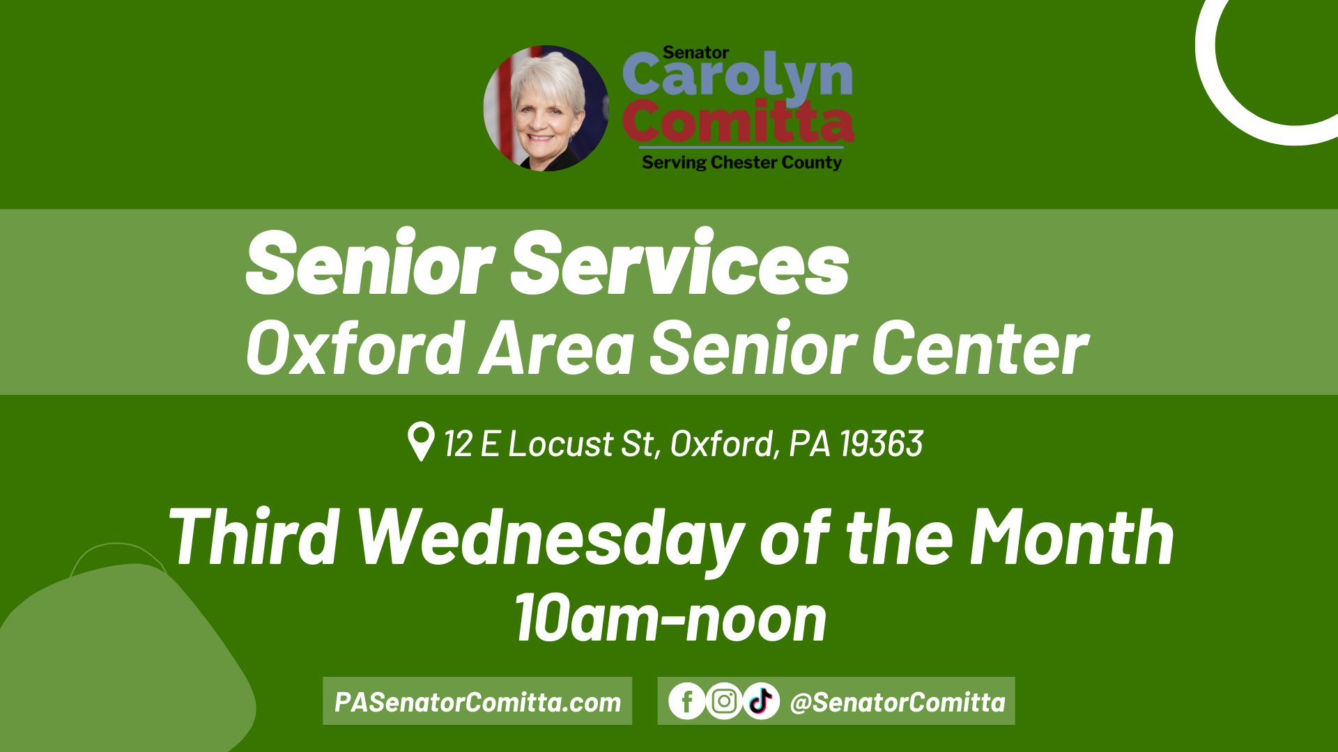 Our staff regularly attends community events and visits locations in Oxford to offer in-person services. Staff members are available to assist residents with a number of issues, including applying for the Property Tax and Rent Rebate Program, SEPTA Key Senior ID Cards, Birth Certificates, Unclaimed Property, and more. Walk-ins are welcome or appointments can be […]